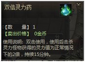 双倍灵力药(售价:9元宝)在商城中可以买到