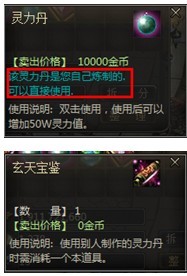 玩家可以将储备的灵力兑换为灵力丹,灵力丹可以交易给自己的朋友,也可以自己使用,使用灵力丹将同样增加50万的灵力值,但使用他人的灵力丹获得灵力值需要使用玄天宝鉴(玄天宝鉴商城中可以购买到,售价为:49元宝),使用自己的灵力丹则不需要使用玄天宝鉴道具。