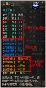 二、双翼天翅属性说明